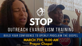 BDIC STOP Evangelism Team invites everyone to attend the next Evangelism training session on Saturday, March 7th at 11:00 am. in the Prayer Chapel. It's time to take the fear...